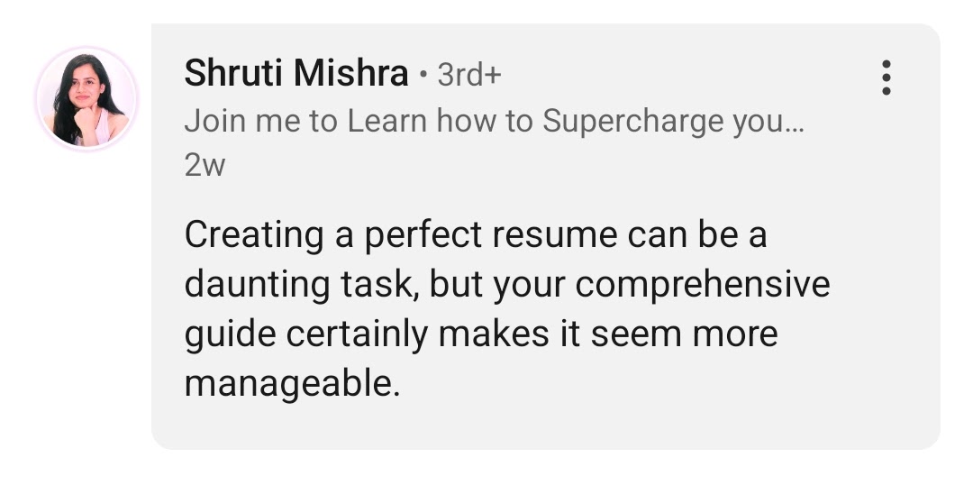The results mentioned, including the time to receive an offer and the salary increase, are based on individual experiences and are for informational purposes only. Actual results may vary. The actual time it takes to secure a position and potential salary increase will depend on various factors, including but not limited to: industry, company, position, candidate pool, skills and experience, and the value you can provide to the company.